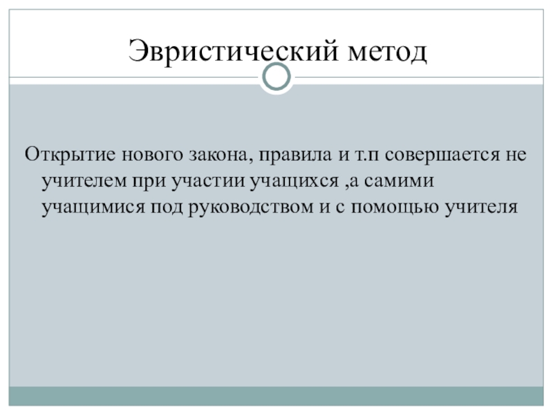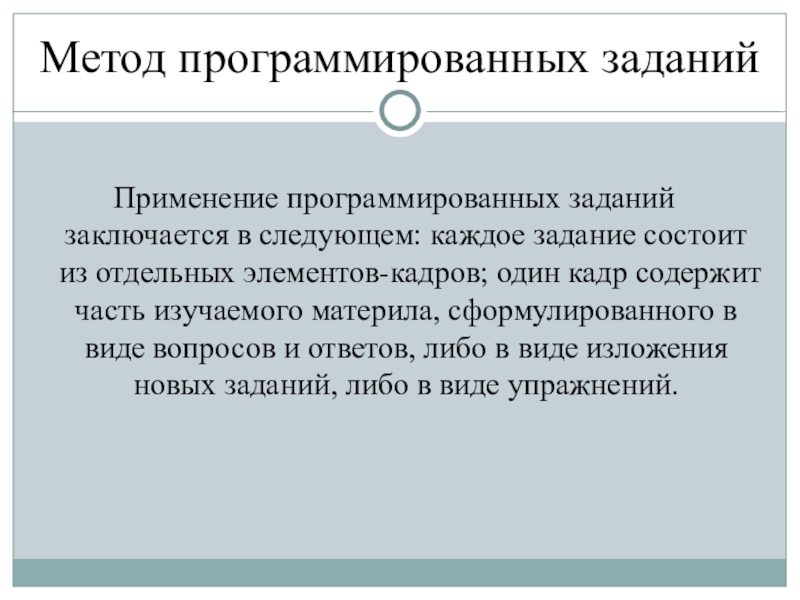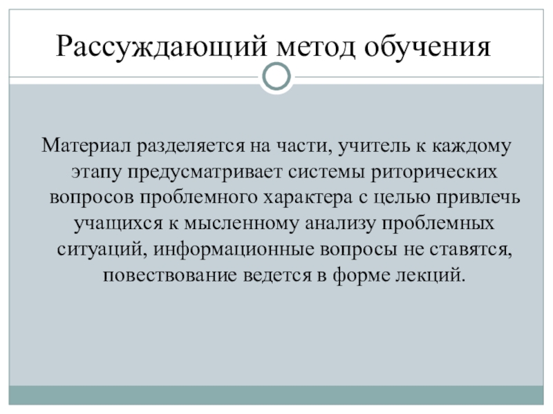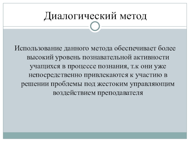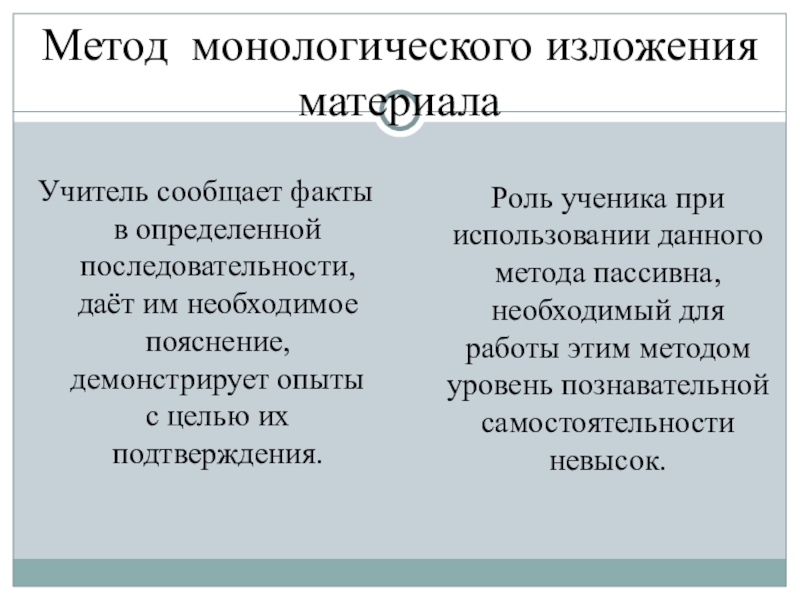 Роль ученика при использовании данного метода пассивна, необходимый для работы этим методом уровень познавательной самостоятельности невысок.