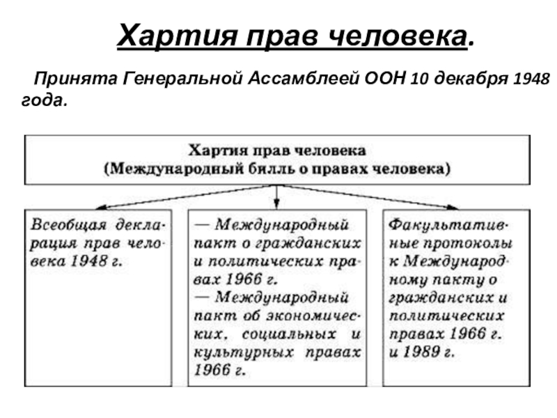Хартия прав человека. Принята Генеральной Ассамблеей ООН 10 декабря 1948 года.