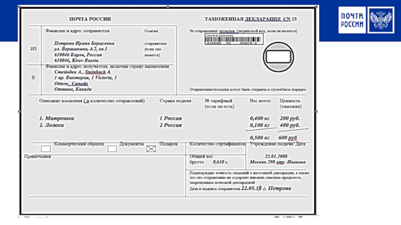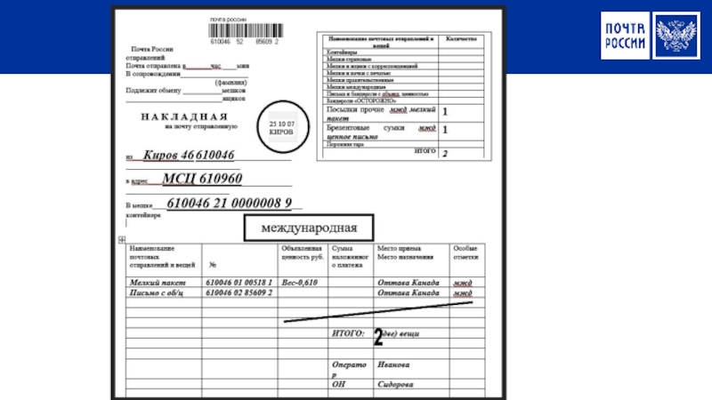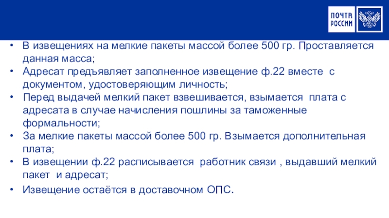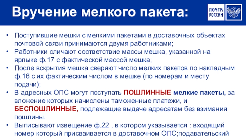 Вручение мелкого пакета: