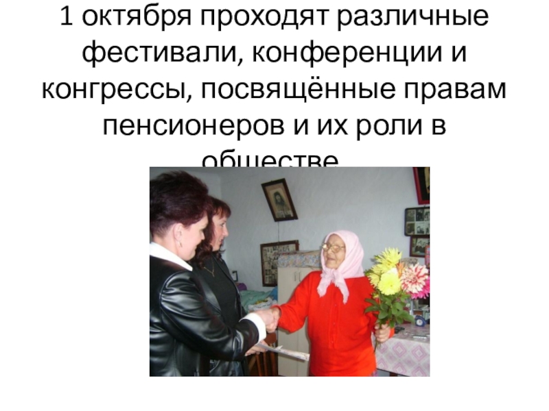 Слайд 10 1 октября проходят различные фестивали, конференции и конгрессы, посвящённые правам пенсионеров