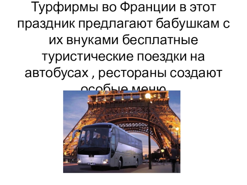 Слайд 15 Турфирмы во Франции в этот праздник предлагают бабушкам с их внуками