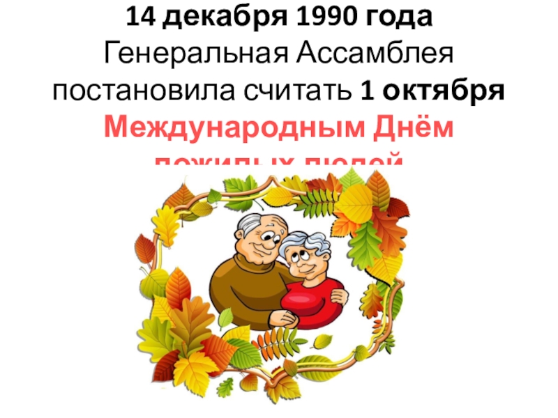 Слайд 8 14 декабря 1990 года Генеральная Ассамблея постановила считать 1 октября Международным