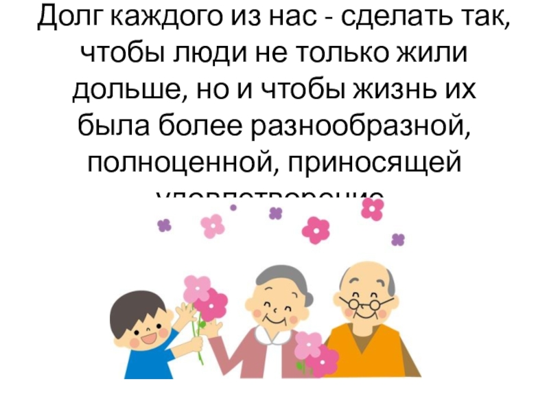 Долг каждого из нас - сделать так, чтобы люди не только жили дольше, но