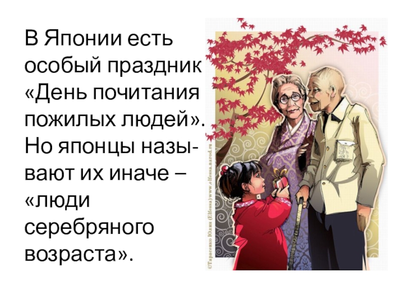 Слайд 11 В Японии есть особый праздник «День почитания пожилых людей». Но японцы