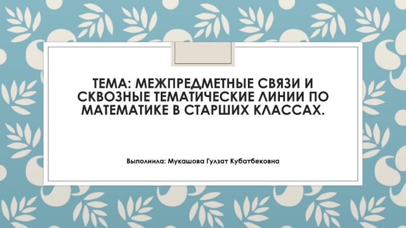 Тема: Межпредметные связи и сквозные тематические линии по математике в старших