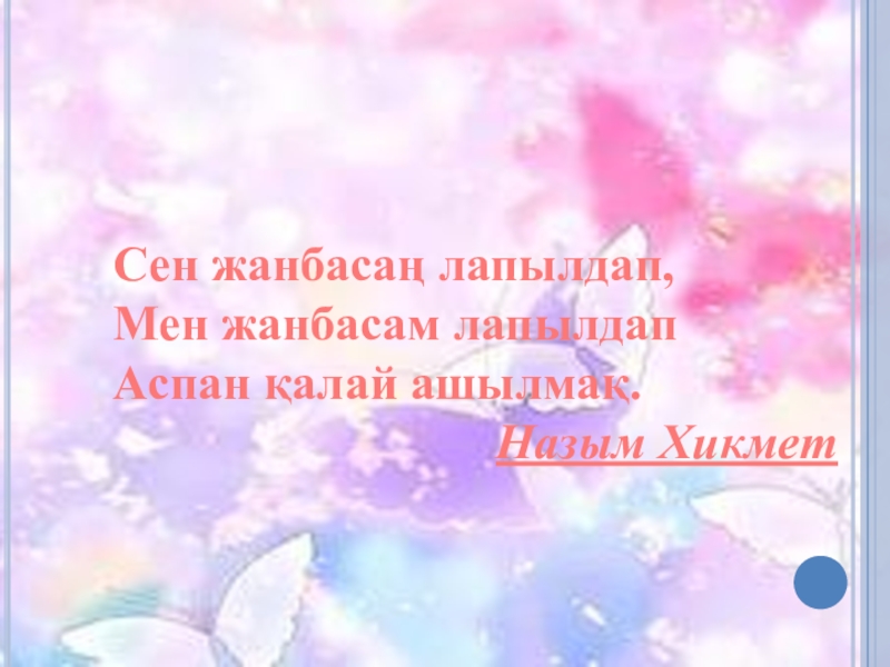 Сен жанбасаң лапылдап,Мен жанбасам лапылдапАспан қалай ашылмақ.