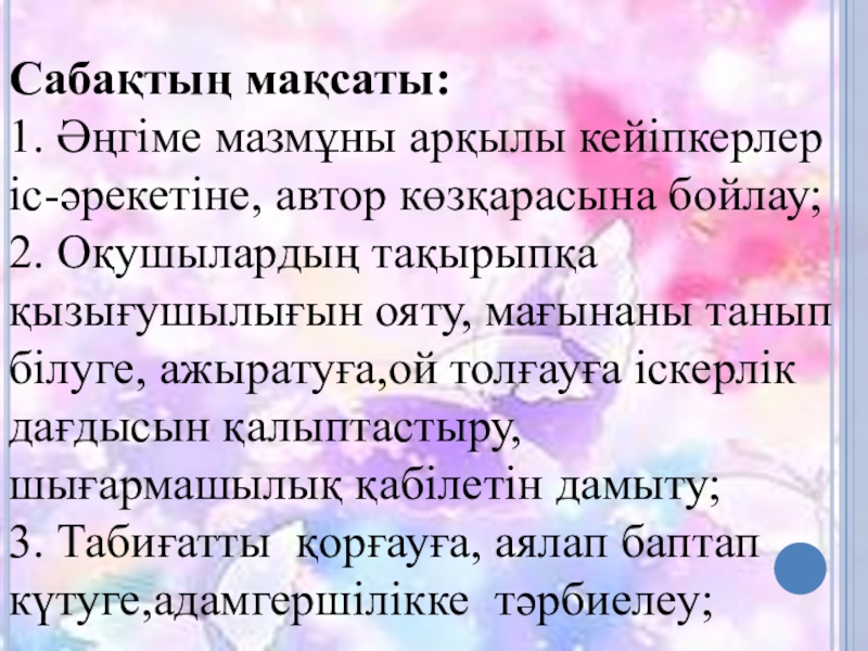 3. Табиғатты қорғауға, аялап баптап күтуге,адамгершілікке тәрбиелеу;