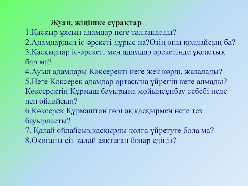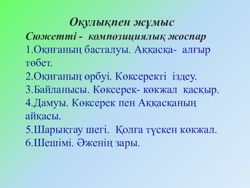 1.Оқиғаның басталуы. Аққасқа- алғыр төбет.