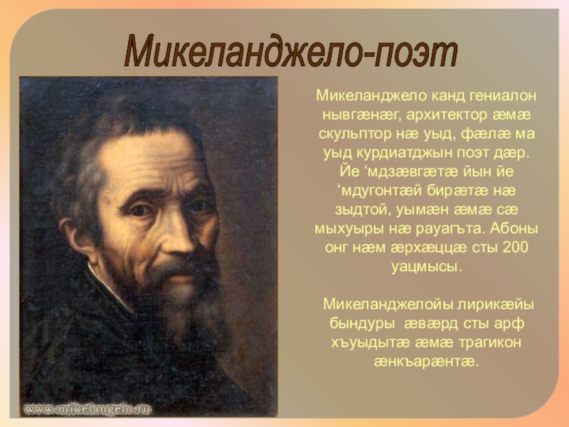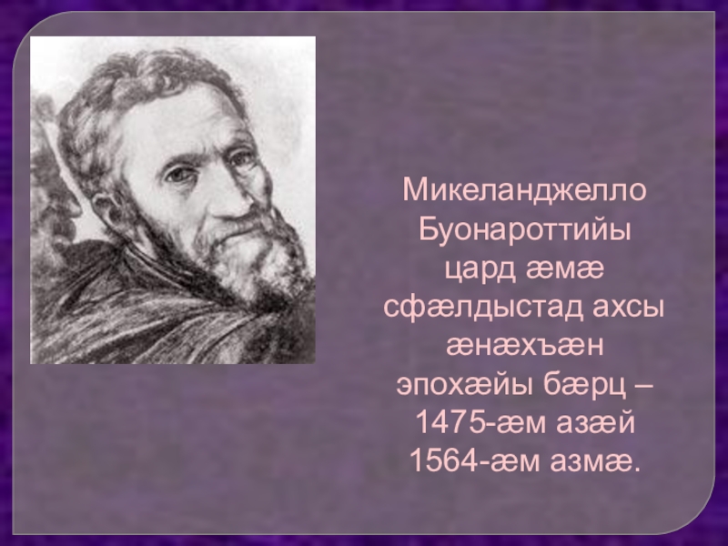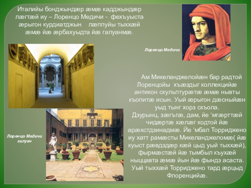 Италийы бонджындæр æмæ кадджындæр лæгтæй иу – Лоренцо Медичи - фехъуыста æрыгон курдиатджын лæппуйы тыххæй æмæ йæ æрбахуыдта йæ галуанмæ.