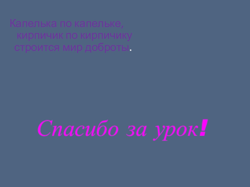 Капелька по капельке,    кирпичик по кирпичику  строится мир доброты.Спасибо за урок!