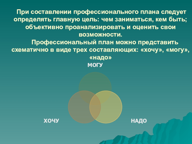 Профессиональный план можно представить схематично в виде трех составляющих: «хочу», «могу», «надо»