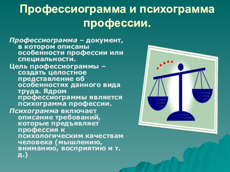 Слайд 11Профессиограмма и психограмма профессии.