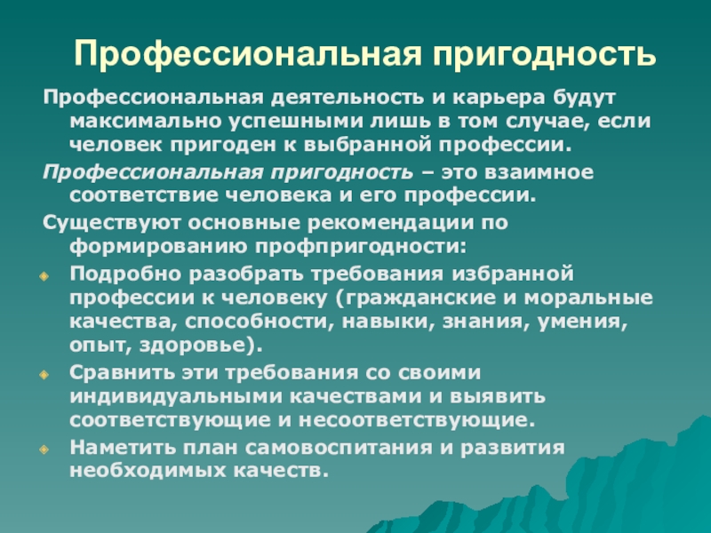 Существуют основные рекомендации по формированию профпригодности: