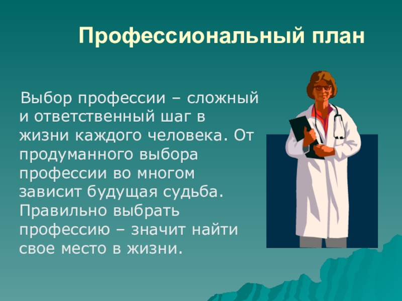 Слайд 3 Профессиональный план