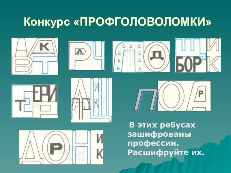 Слайд 15Конкурс «ПРОФГОЛОВОЛОМКИ»