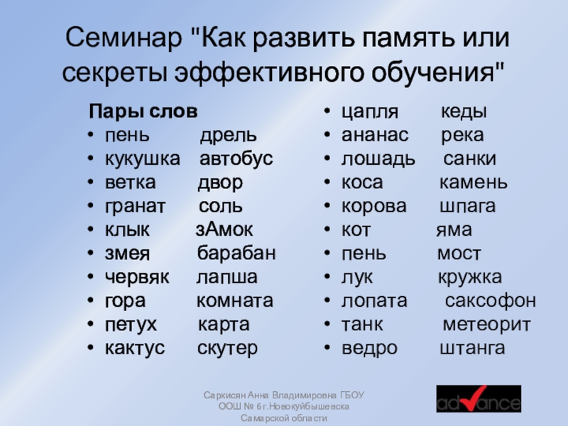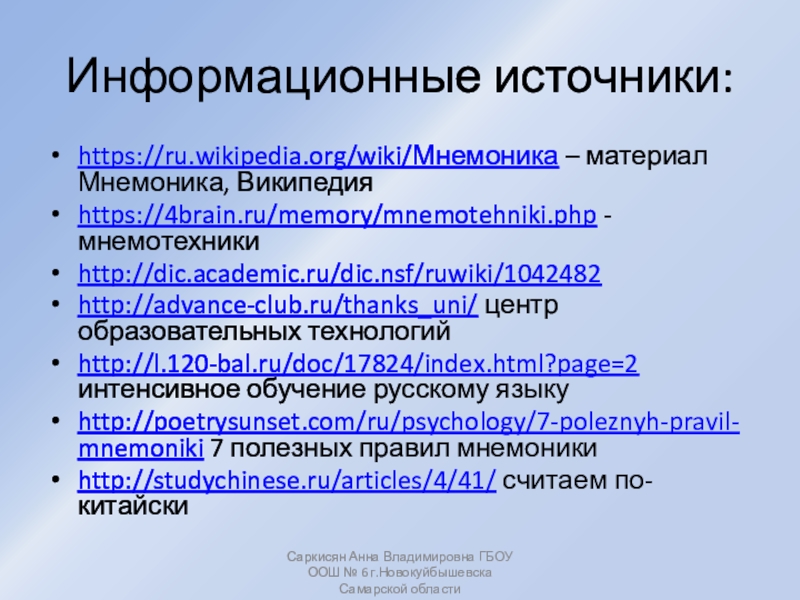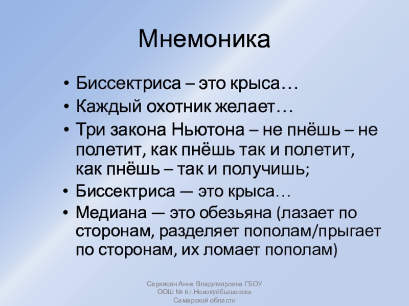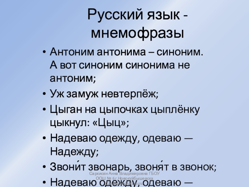 Саркисян Анна Владимировна ГБОУ ООШ № 6 г.Новокуйбышевска Самарской области