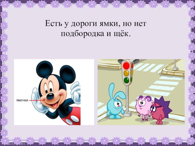 Слайд 6Есть у дороги ямки, но нет подбородка и щёк.