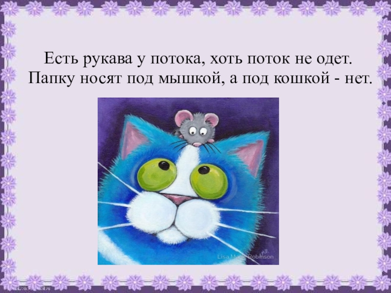 Слайд 13Есть рукава у потока, хоть поток не одет. Папку носят под мышкой,