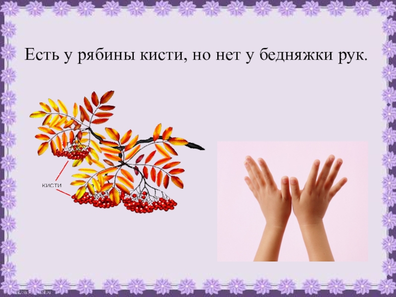 Слайд 8Есть у рябины кисти, но нет у бедняжки рук.