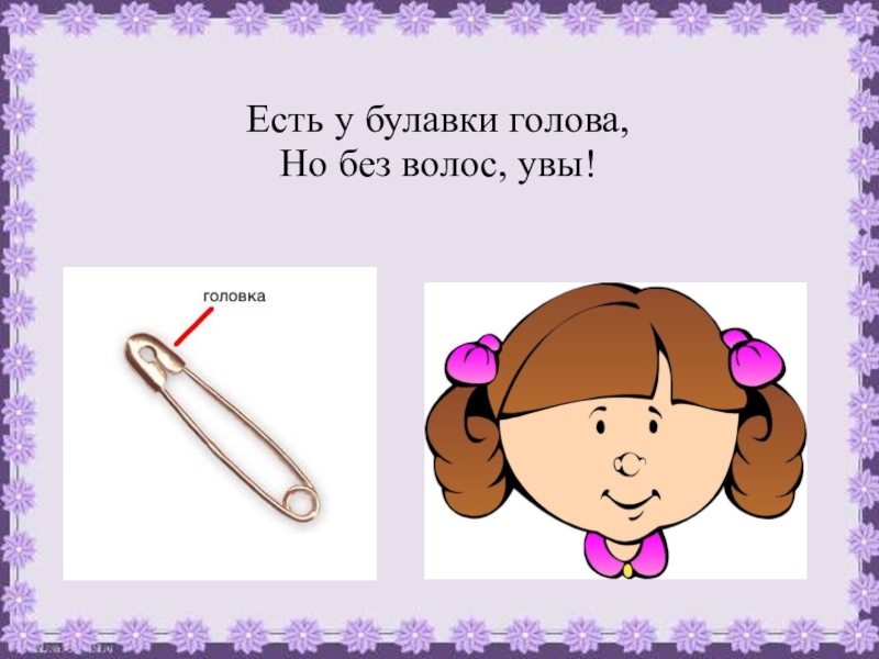 Слайд 2Есть у булавки голова, Но без волос, увы!