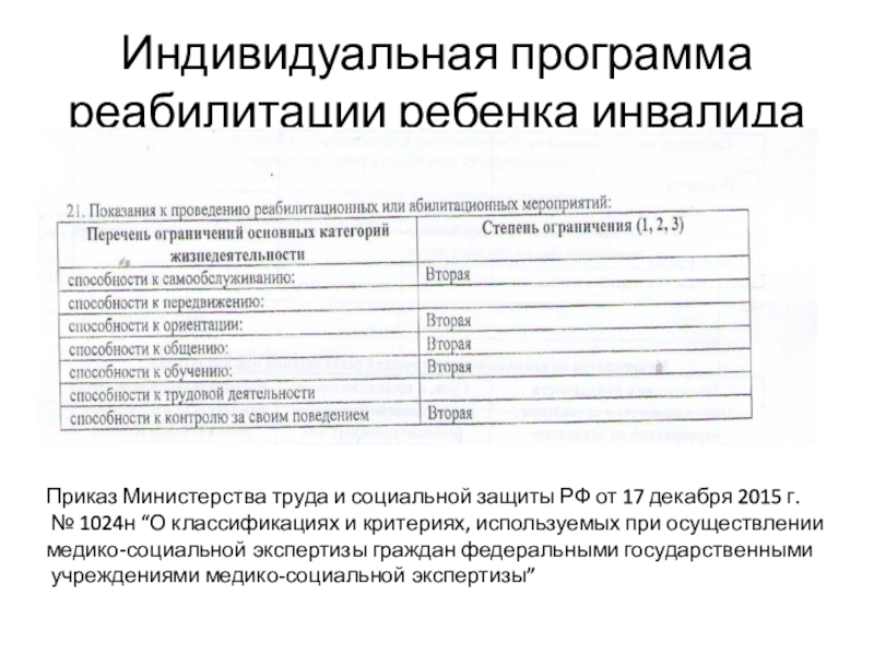 Слайд 11Индивидуальная программа реабилитации ребенка инвалида