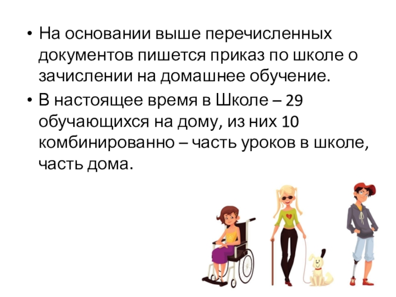 В настоящее время в Школе – 29 обучающихся на дому, из них 10 комбинированно – часть уроков в школе, часть дома.