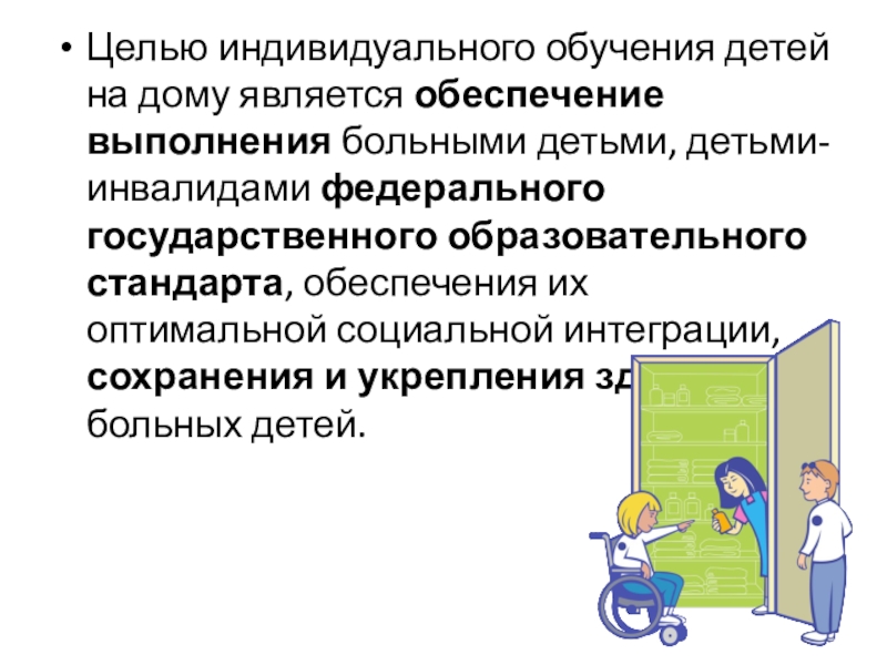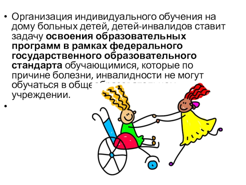Слайд 3Организация индивидуального обучения на дому больных детей, детей-инвалидов ставит задачу освоения