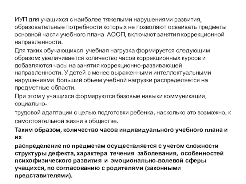 Слайд 30ИУП для учащихся с наиболее тяжелыми нарушениями развития, образовательные потребности которых