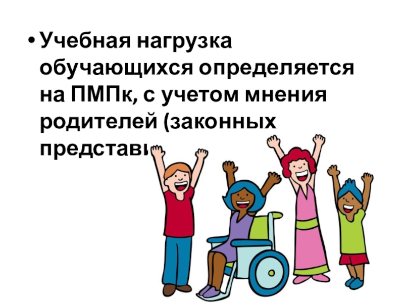 Слайд 6Учебная нагрузка обучающихся определяется на ПМПк, с учетом мнения родителей (законных