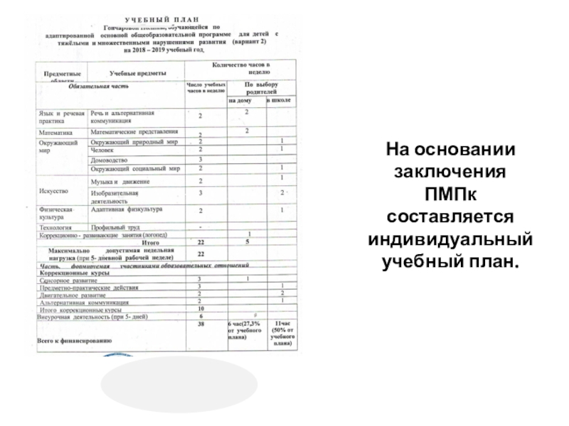 Слайд 19На основании заключения ПМПк составляется индивидуальный учебный план.