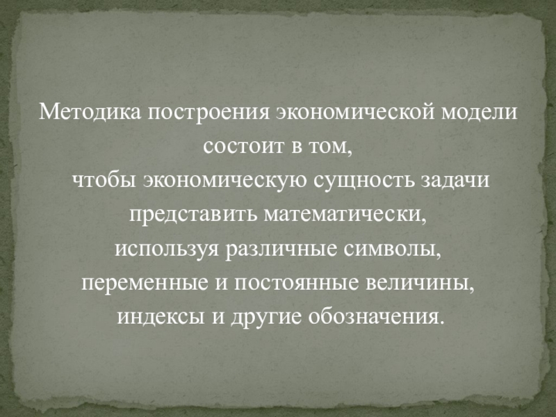 Методика построения экономической модели состоит в том, чтобы экономическую сущность задачи представить математически, используя различные символы, переменные