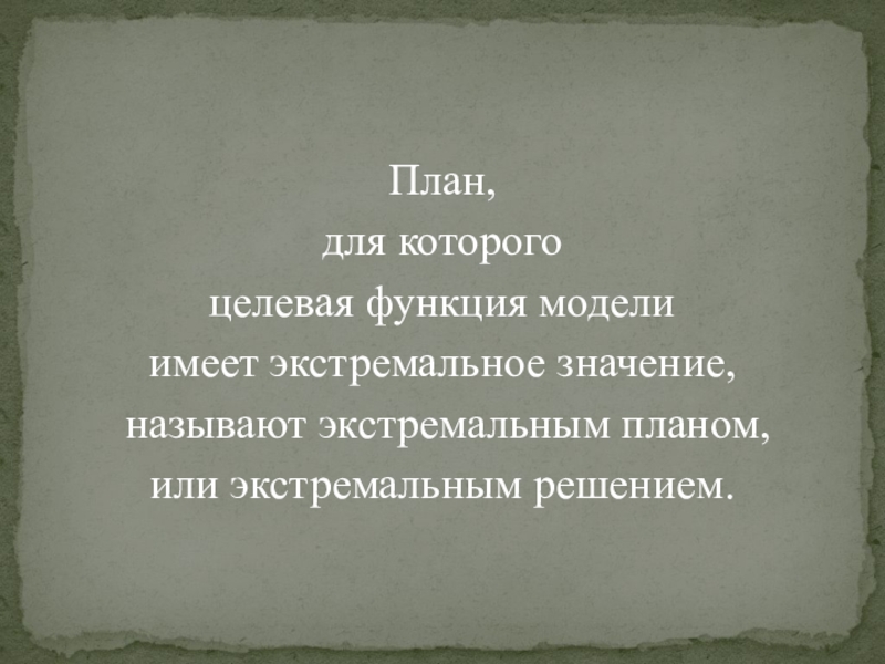 План, для которого целевая функция модели имеет экстремальное значение, называют экстремальным планом, или экстремальным решением.