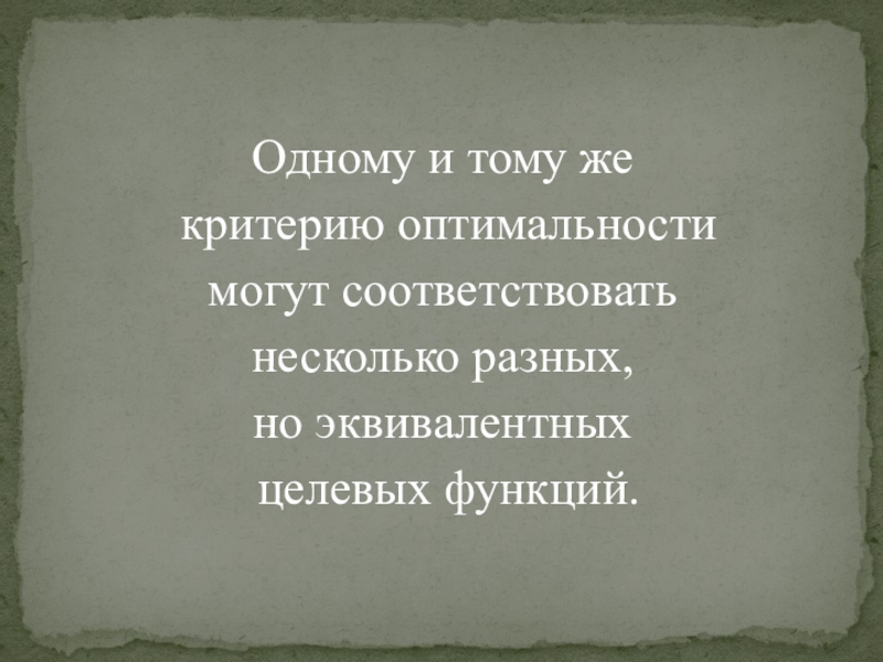 Одному и тому же критерию оптимальности могут соответствовать несколько разных, но эквивалентных целевых функций.