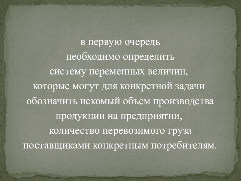 в первую очередь необходимо определить систему переменных величин, которые могут для конкретной задачи обозначить искомый объем производства
