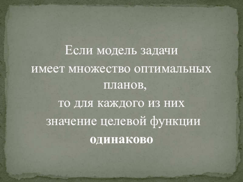 Если модель задачи имеет множество оптимальных планов, то для каждого из них значение целевой функции одинаково