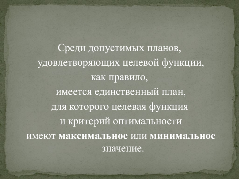 Среди допустимых планов, удовлетворяющих целевой функции, как правило, имеется единственный план, для которого целевая функция и критерий