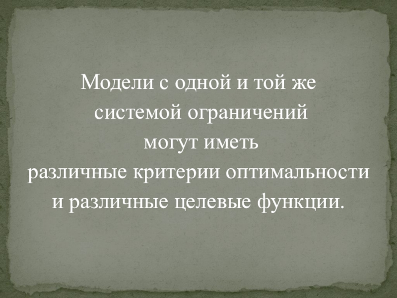 Презентация, доклад на тему Модели с одной и той же системой ограничений могут иметь различные критерии оптимальности и различные целевые функции.