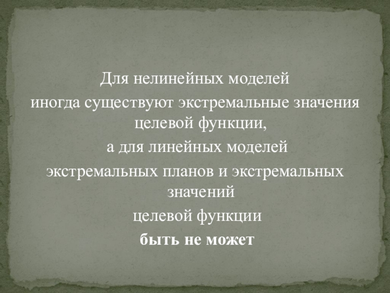 Для нелинейных моделей иногда существуют экстремальные значения целевой функции, а для линейных моделей экстремальных планов и экстремальных