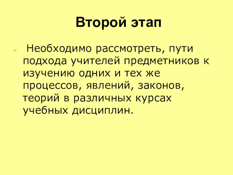 Необходимо рассмотреть, пути подхода учителей предметников к изучению одних и тех же процессов, явлений, законов, теорий в различных курсах учебных дисциплин.