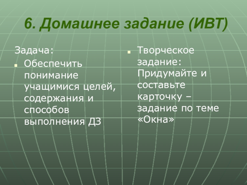 Творческое задание: Придумайте и составьте карточку –задание по теме «Окна»