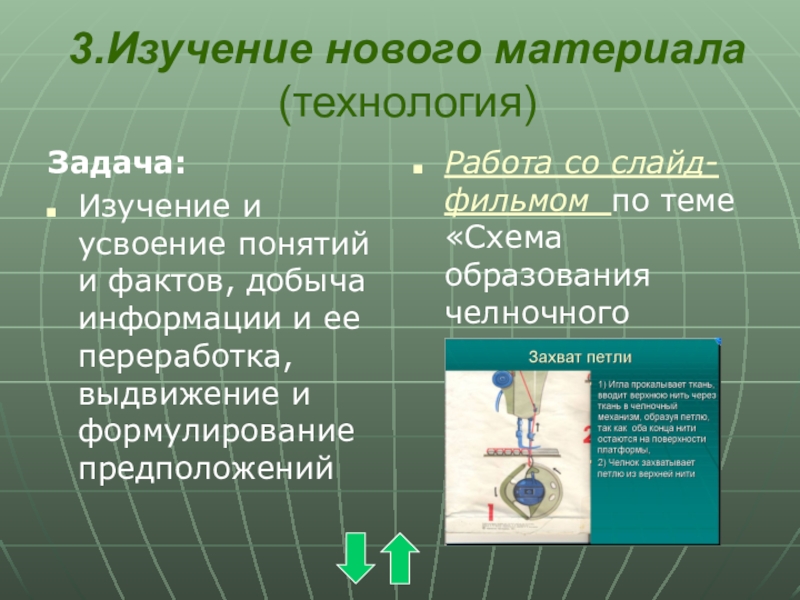 Работа со слайд-фильмом по теме «Схема образования челночного стежка»