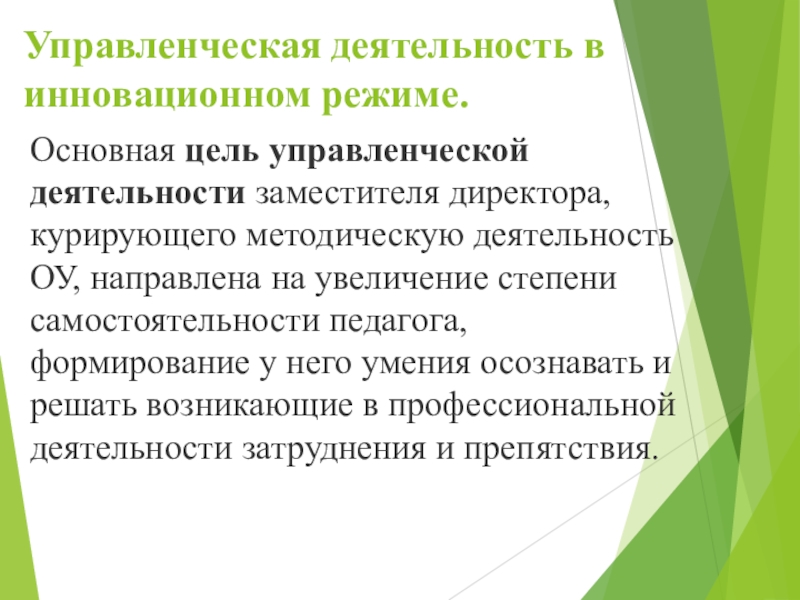 Слайд 16Управленческая деятельность в инновационном режиме.