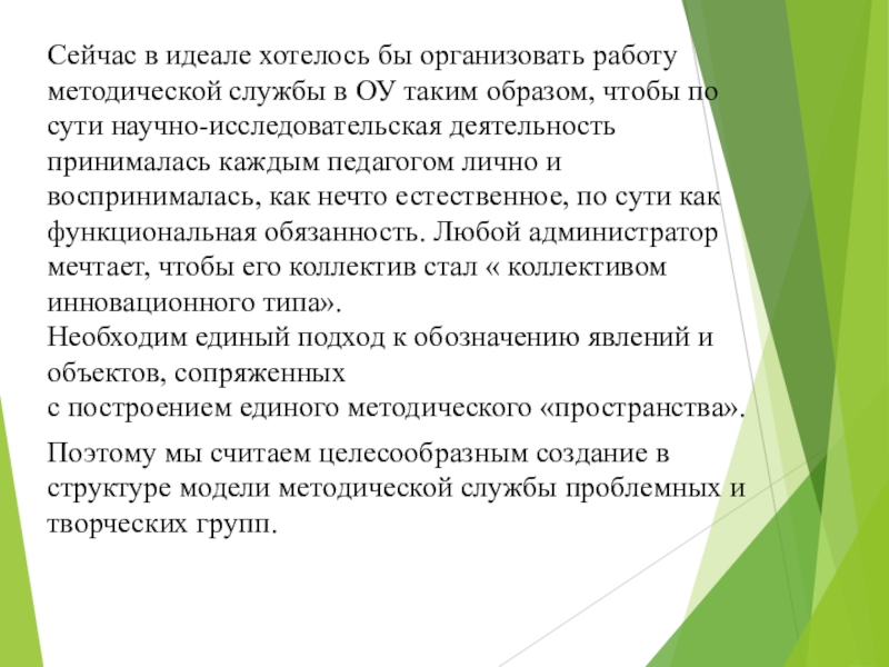 Слайд 12Сейчас в идеале хотелось бы организовать работу методической службы в ОУ