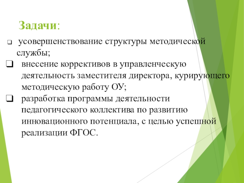 усовершенствование структуры методической службы;