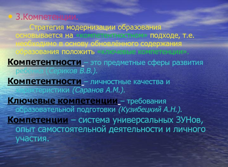 Стратегия модернизации образования основывается на «компетентностном» подходе, т.е. необходимо в основу