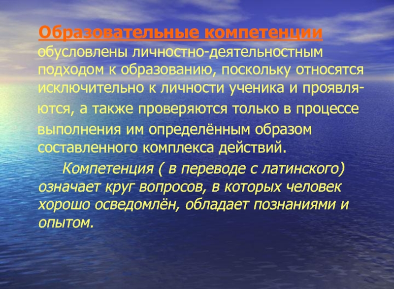 Слайд 9 Образовательные компетенции обусловлены личностно-деятельностным подходом к образованию, поскольку
