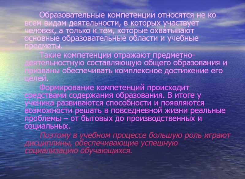 Такие компетенции отражают предметно- деятельностную составляющую общего образования и призваны обеспечивать комплексное достижение его целей.