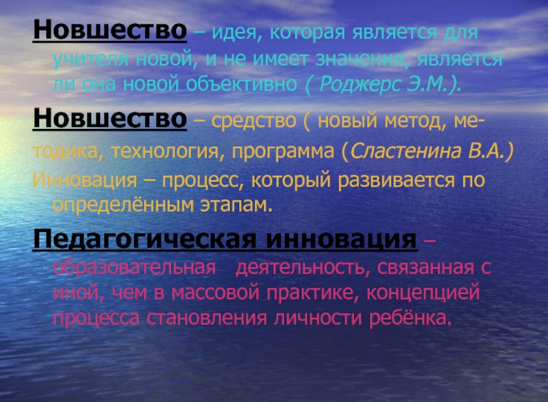 Слайд 5Новшество – идея, которая является для учителя новой, и не имеет