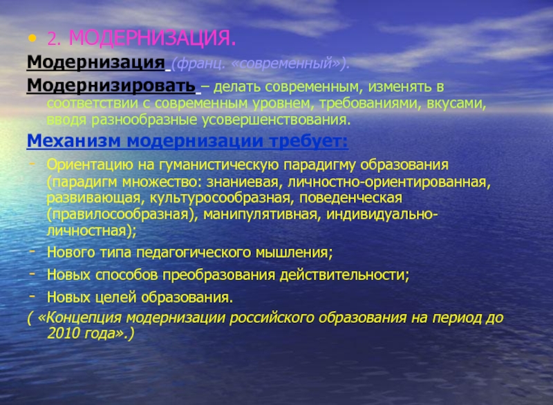 ( «Концепция модернизации российского образования на период до 2010 года».)