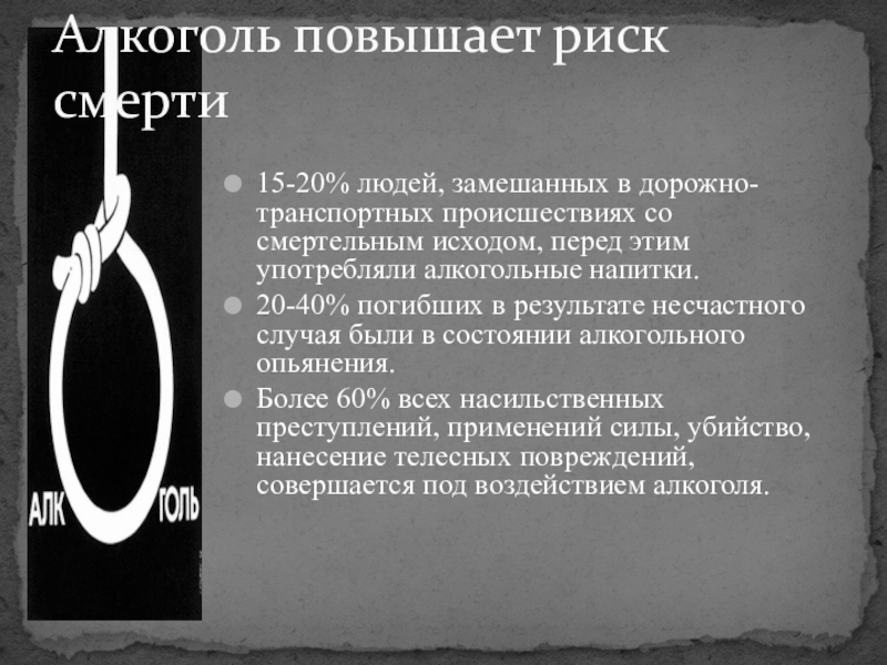 Когда подушевое потребление чистого спирта превышает 8 литров, это считается фактически вымиранием нации. У нас эти показатели просто какие-то критические, невероятные - на данный момент - это 15,1.